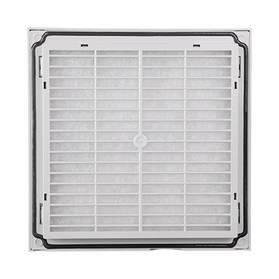 通風過濾網組是專為電氣控制柜、服務器機柜等設備設計的防護組件。其作用是在為機柜內設備強制散熱、防止過熱的同時,有效阻隔灰塵、絮毛等污染物進入。通常采用初效或中效濾網,平衡通風效率與過濾性能,防止污染物積聚導致設備短路、過熱和壽命縮短。它是保障精密電子設備穩定運行、降低維護成本的關鍵部件。大功率的軸流風扇可選擇“吹”或者“抽”的方式安裝,通風葉柵的防雨功能既能防止機械 性的損傷,又能防止潮濕的進入,過濾器的沿邊使用的是高級密封膠條,可以防止雨水沿著 過濾器開孔處進入控制柜中。無紡布纖維 過濾棉用于防止10微米以上的灰塵顆粒。安裝無 需螺絲,只要嵌入即可,并且其防護等級可以達到IP54級別。