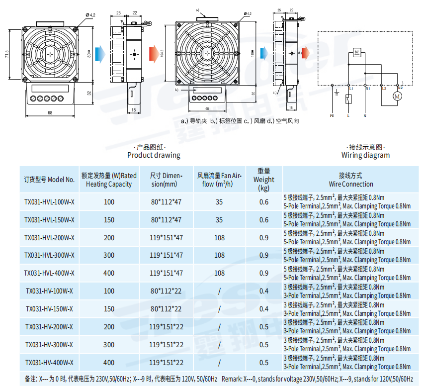 TX031-HV 不帶風(fēng)扇加熱器