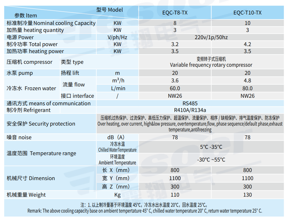 注:以上制冷量基于環境溫度 45℃,冷凍水出水溫度 20℃,回水溫度 25℃。