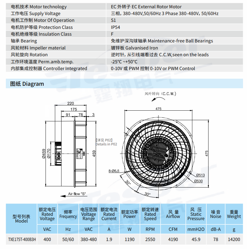 產品型號:TXE175T-400B3H