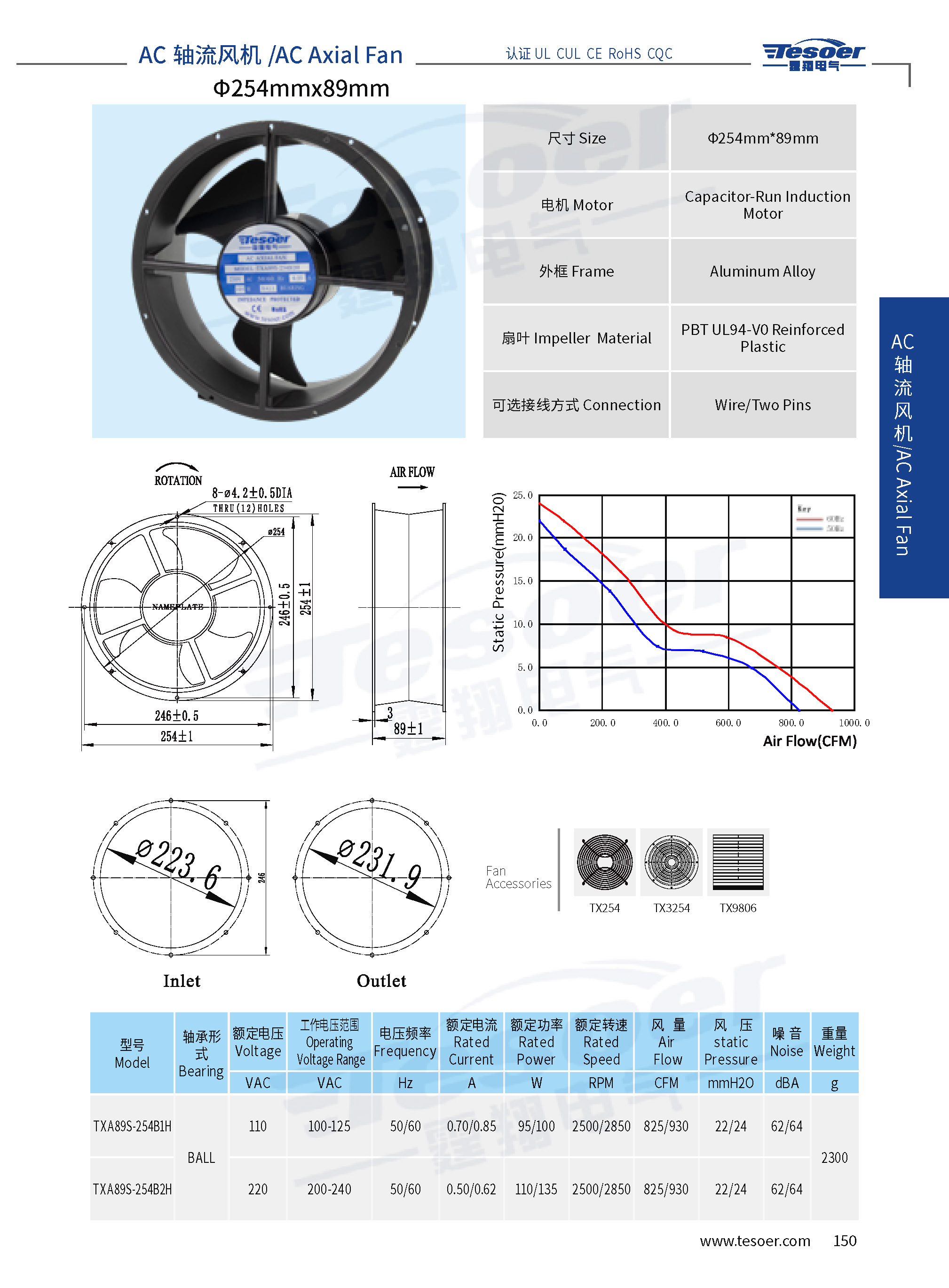 風扇尺寸:φ254*89mm