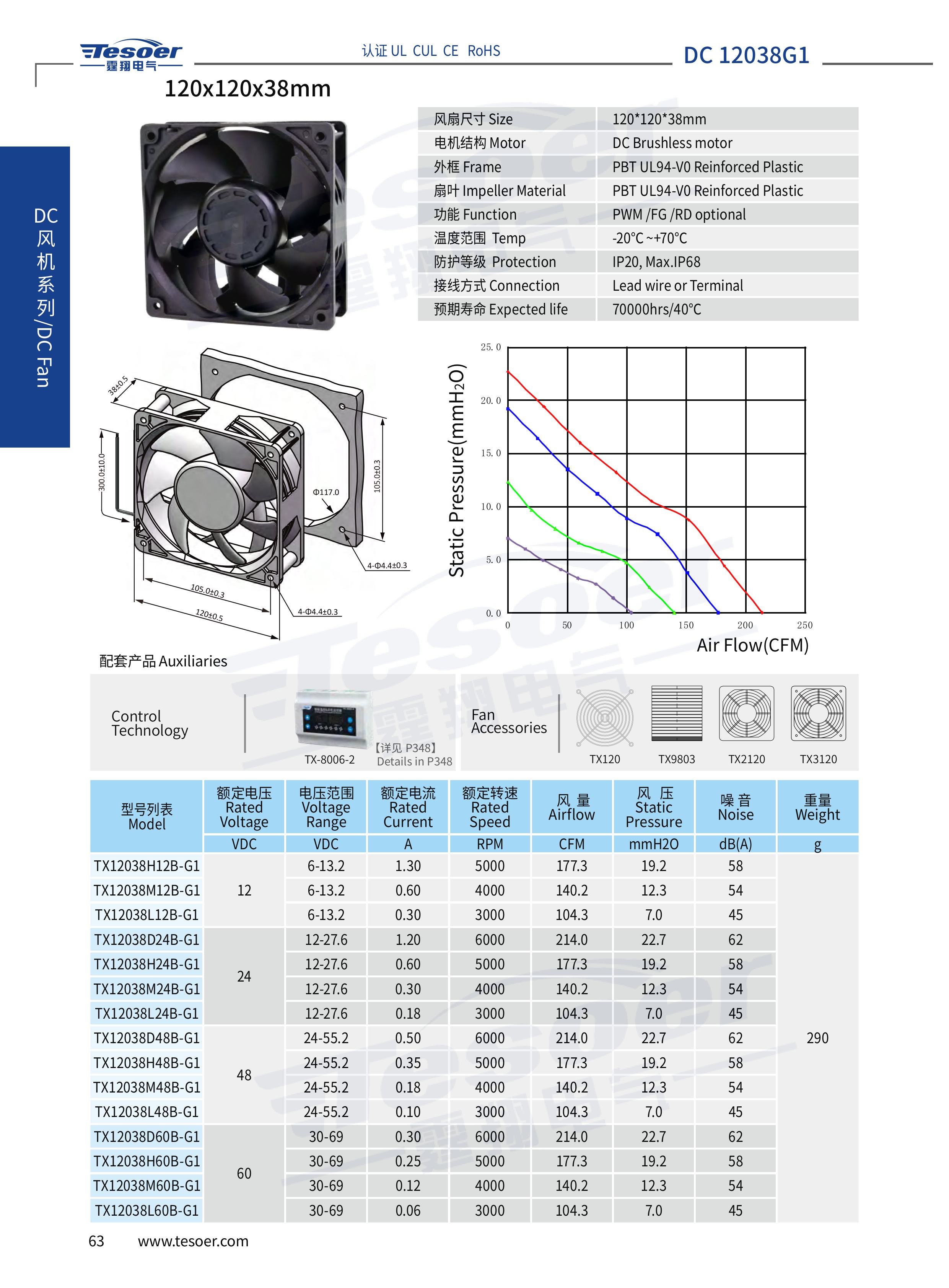 扇葉:PBT UL94-V0 Reinforced Plastic